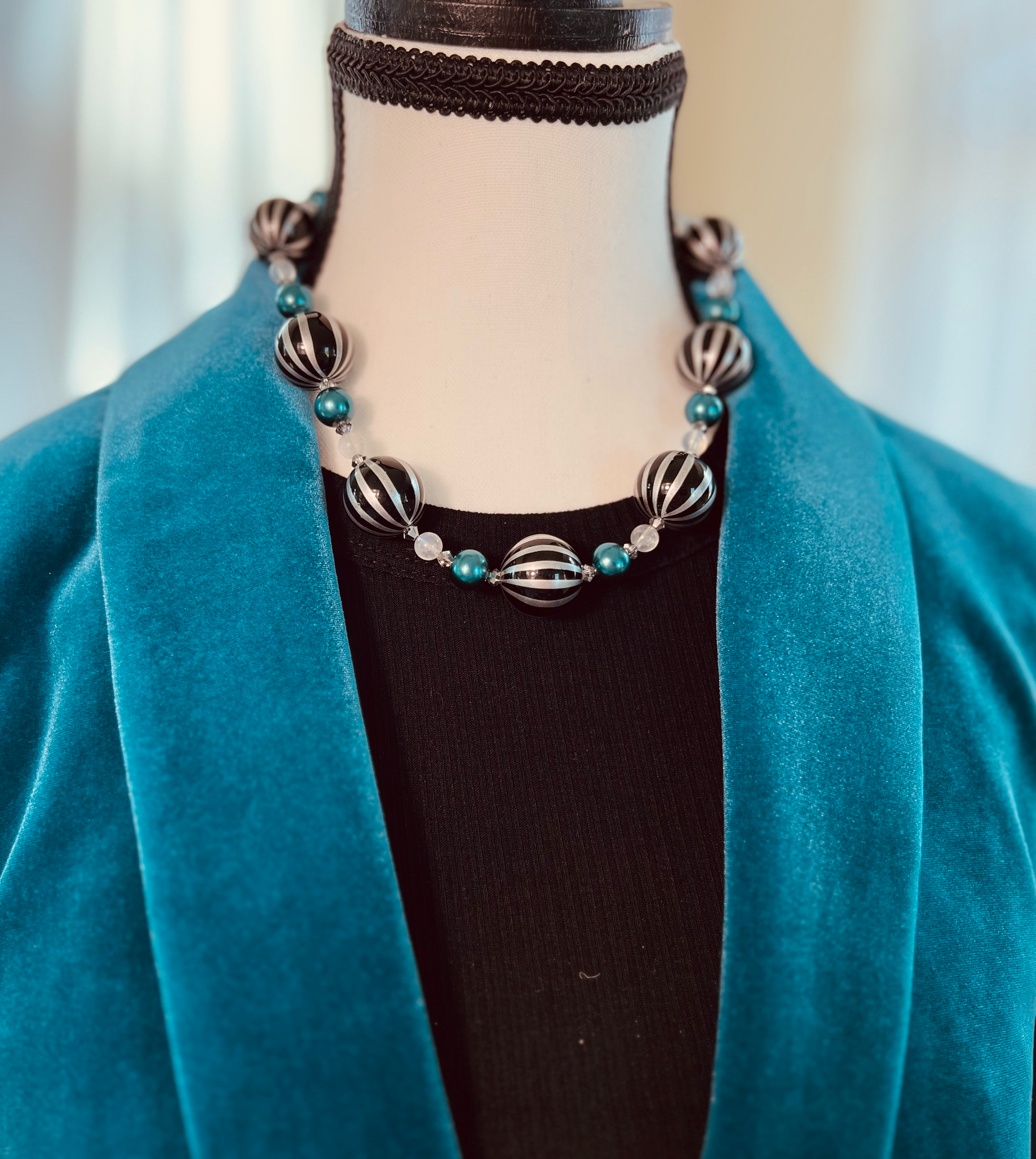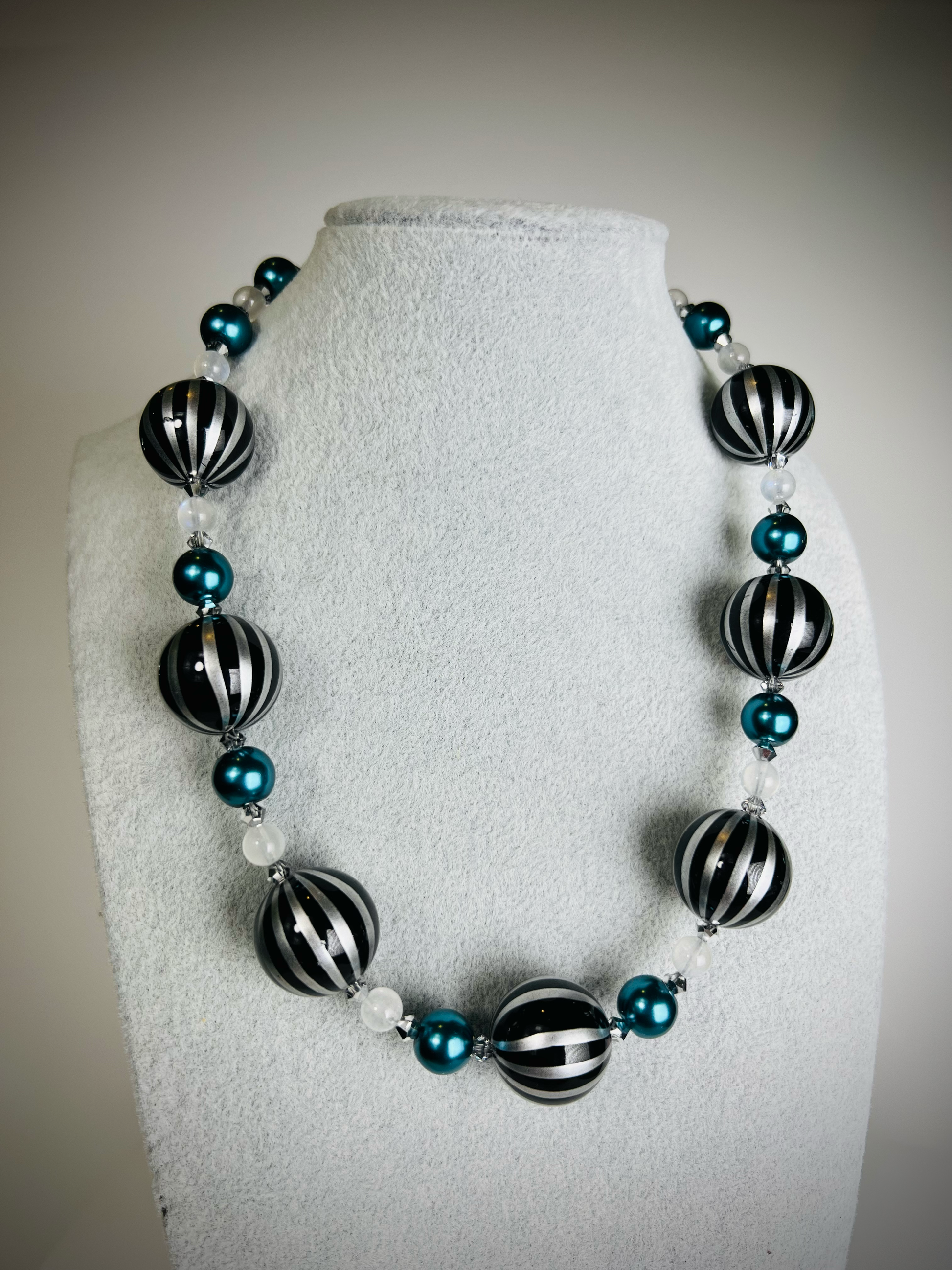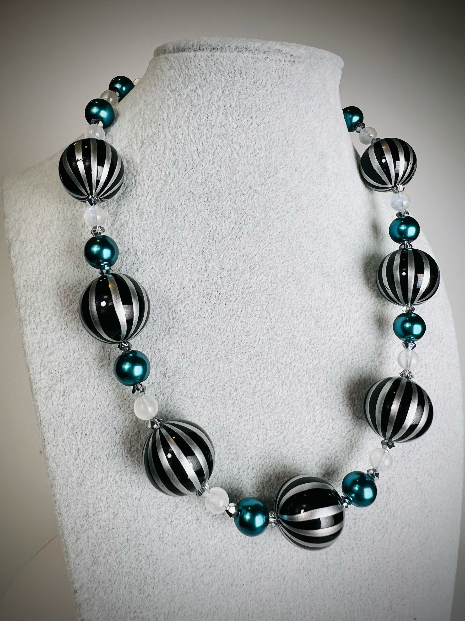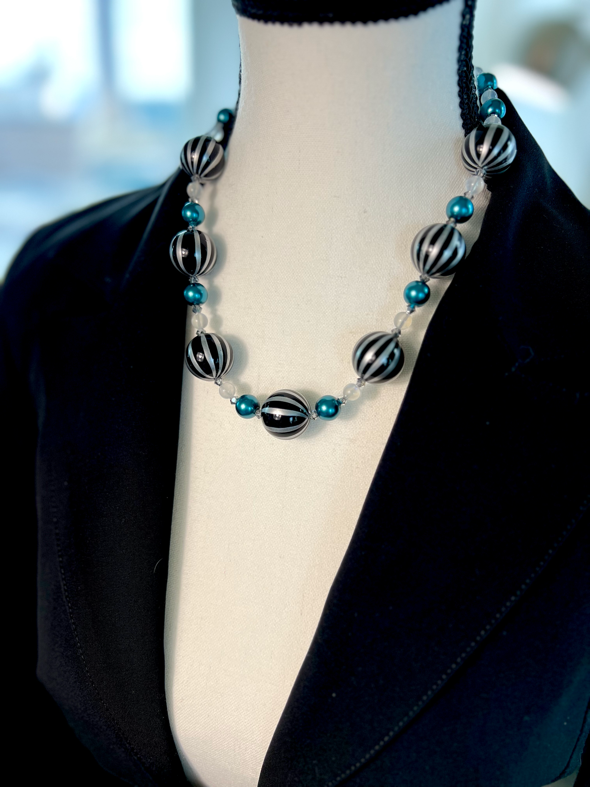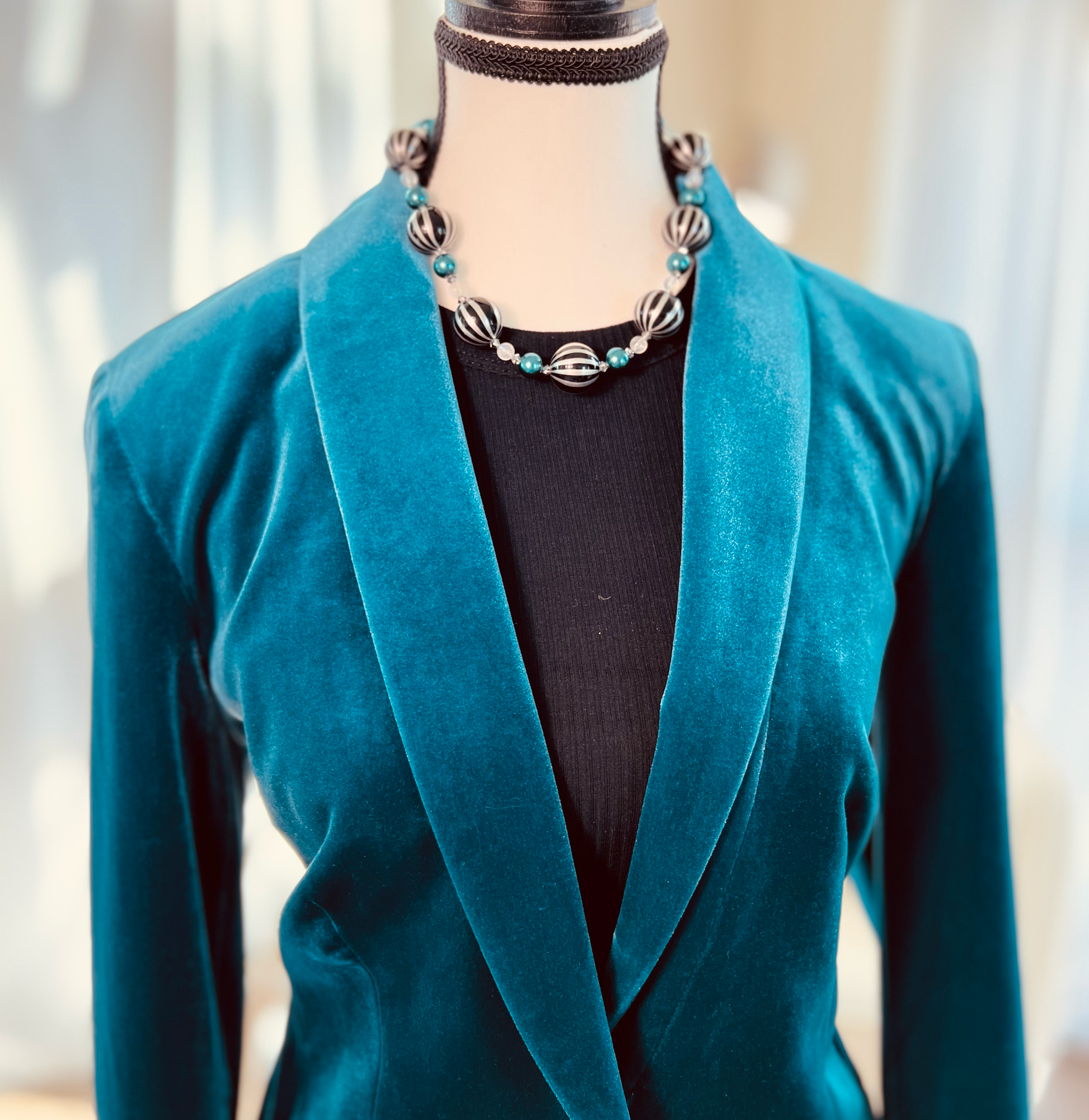 This necklace is currently one-of-a-kind. There are rarely more than 3 of any design made. Necklace is 16" with a 2" extension.