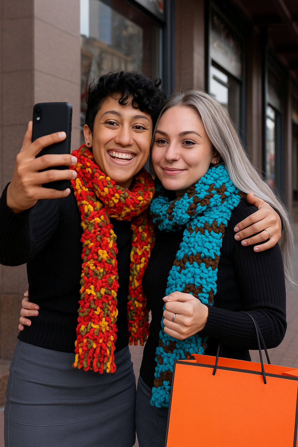 At 12 inches wide and 77 inches long, this scarf drapes effortlessly in every style — looped for cozy texture, wrapped for warmth, or let loose to showcase its shifting colors. True to the Perfectly Imperfect spirit, it’s intentionally knit with variations in tension, creating a landscape of texture that feels alive under your fingertips.